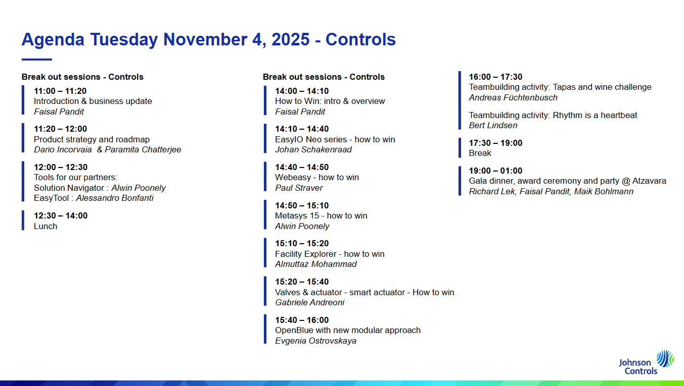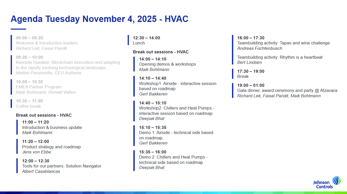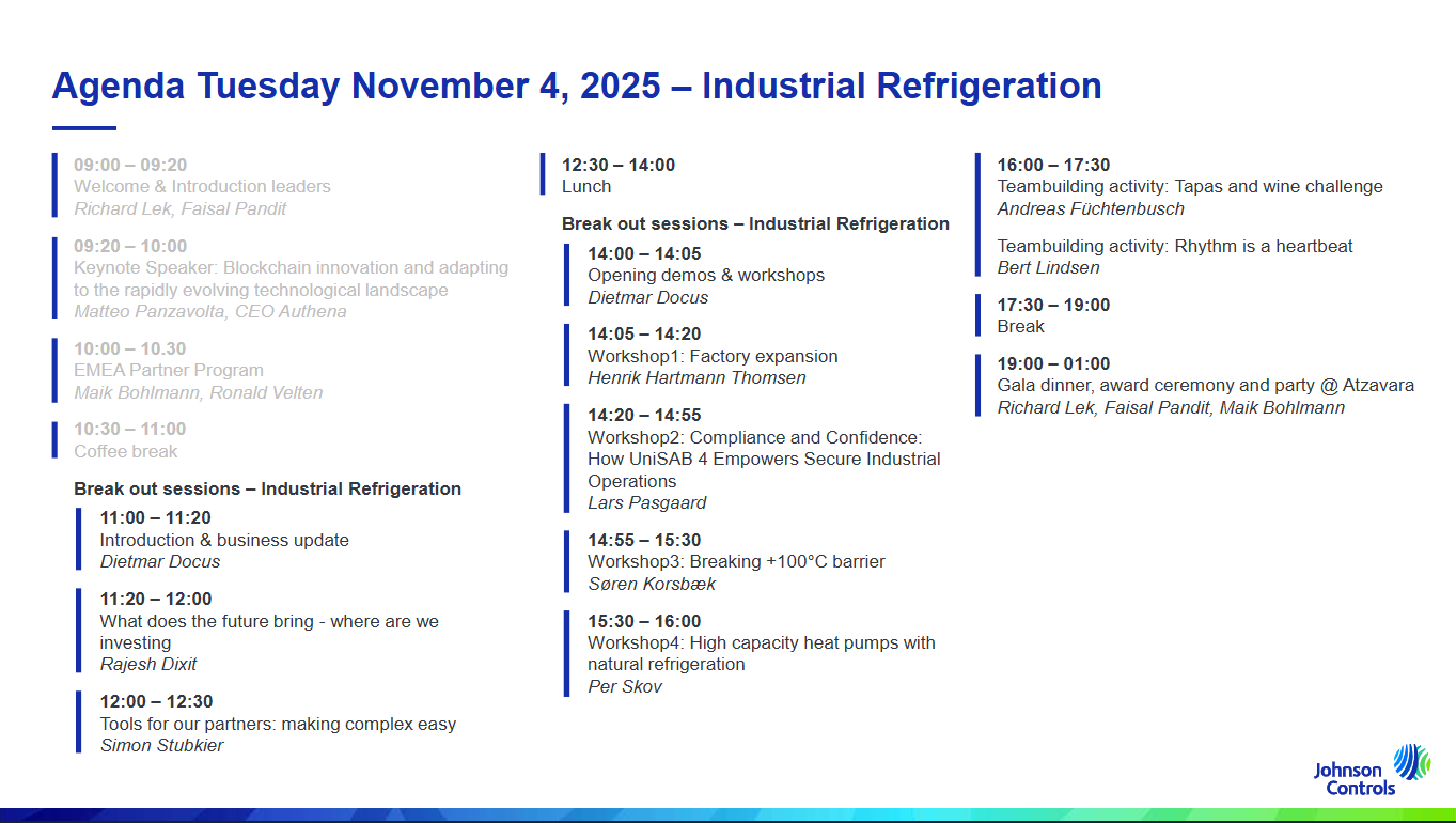 At our Partner Conference, we shared key insights and updates through keynotes and breakout sessions. Explore the presentations below to revisit topics of interest, and enjoy a selection of event pictures we are sharing as a special memory of the great moments we experienced together. For copies of presentations that include highly proprietary information, please contact your Johnson Controls representative.